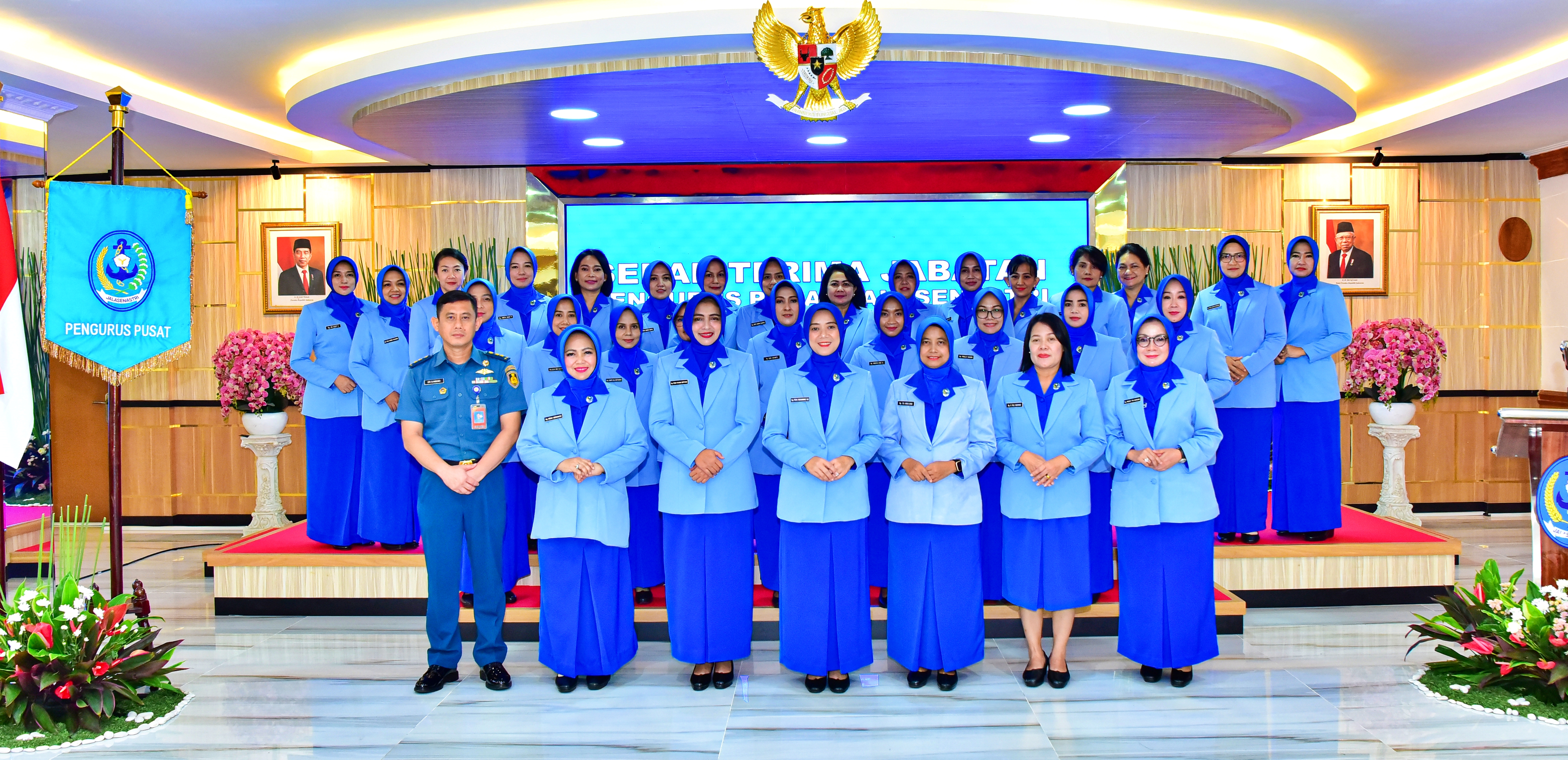 Ketua Umum Jalasenastri Ny. Fera Muhammad Ali memimpin upacara Serah Terima Jabatan Pengurus Pusat Jalasenastri, diantaranya :