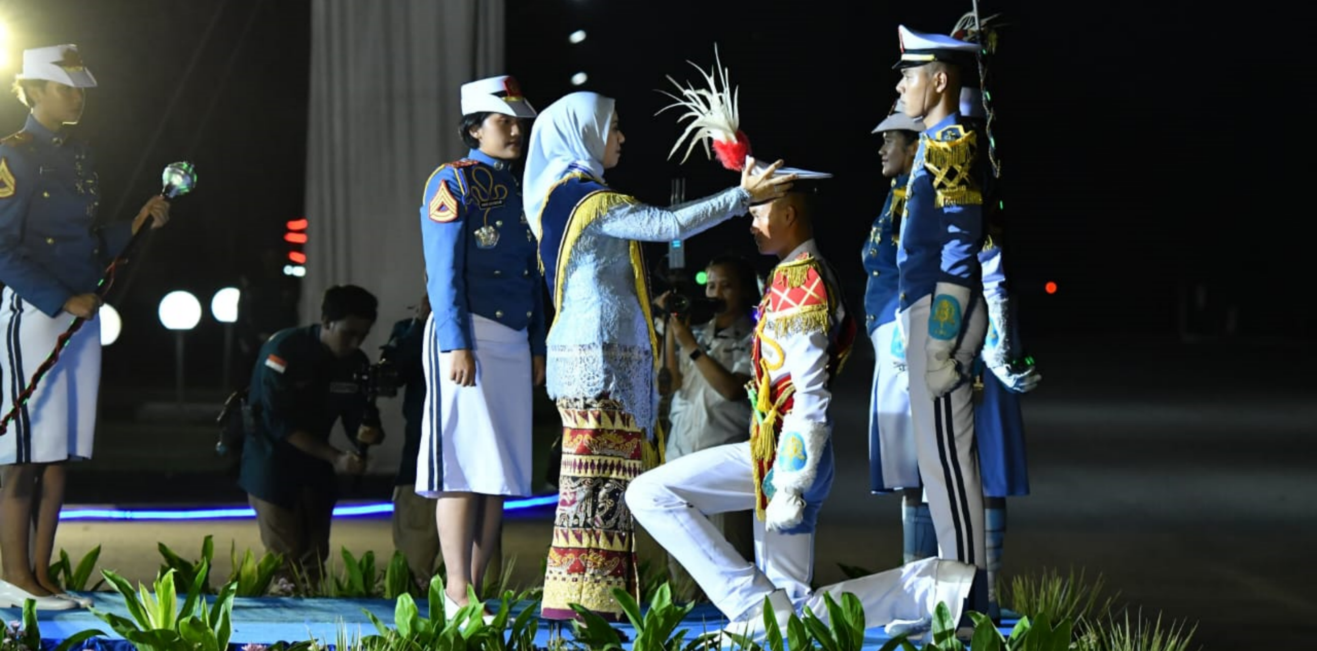 Sebagai regenerasi kepemimpinan, Akademi TNI Angkatan Laut (AAL) melaksanakan Parade Surya Senja dalam rangka serah terima jabatan Tambur Mayor Genderang Suling Gita Jala Taruna AAL yang dipimpin oleh Ketua Umum Jalasenastri Ny. Fera Muhammad Ali selaku Ibu Taruna AAL di Lapangan Arafuru, Bumimoro, Surabaya, Kamis (4/7/2024).